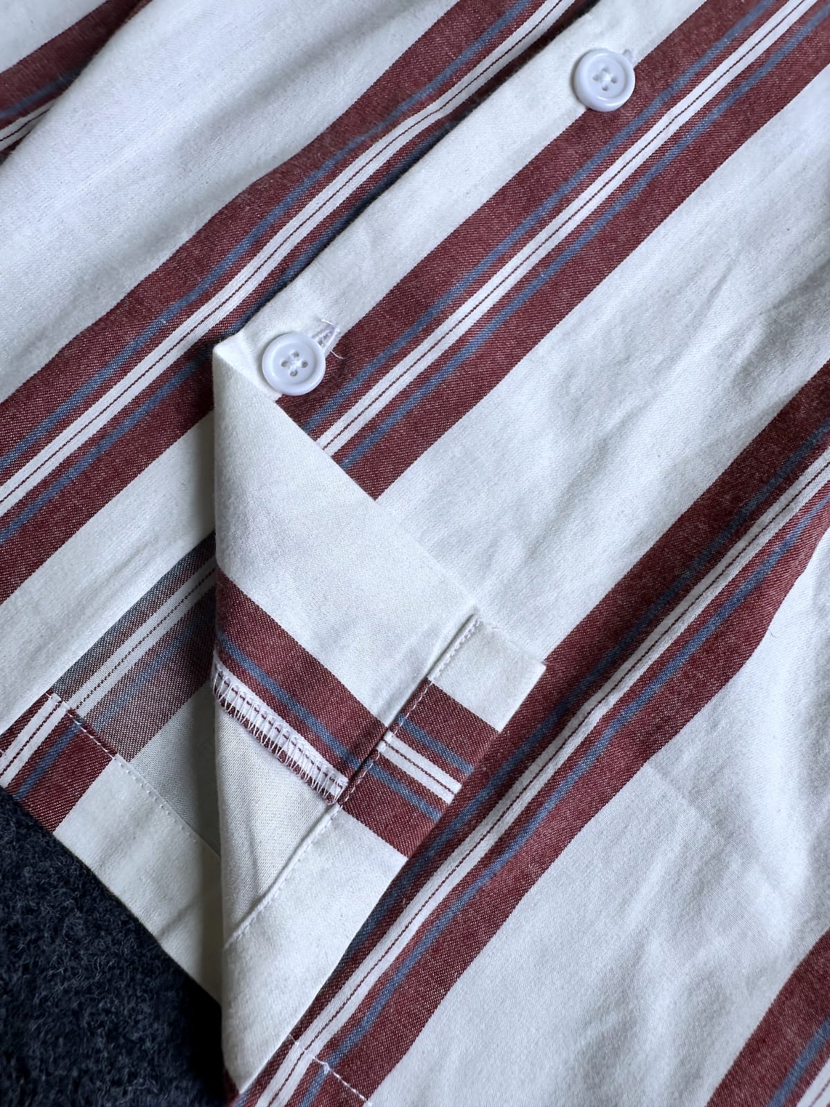 Be the first to review “Premium Semi D-shoulder Cuban Half Shirt – Textured White with merun stipe”